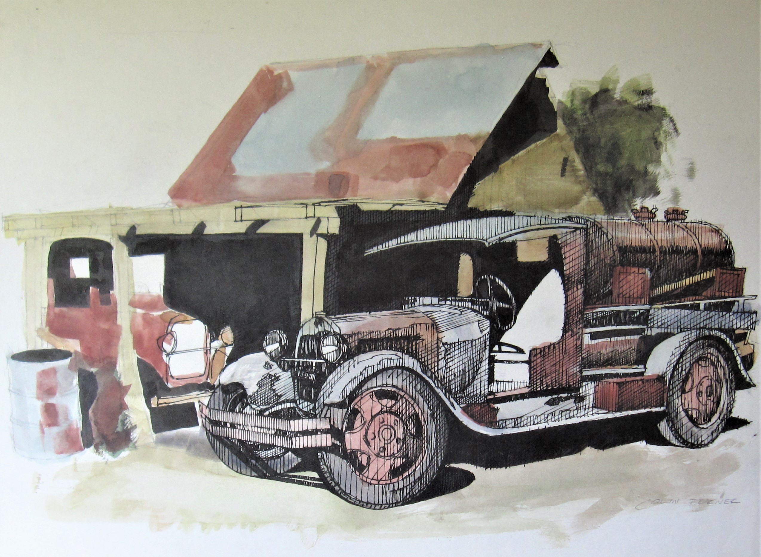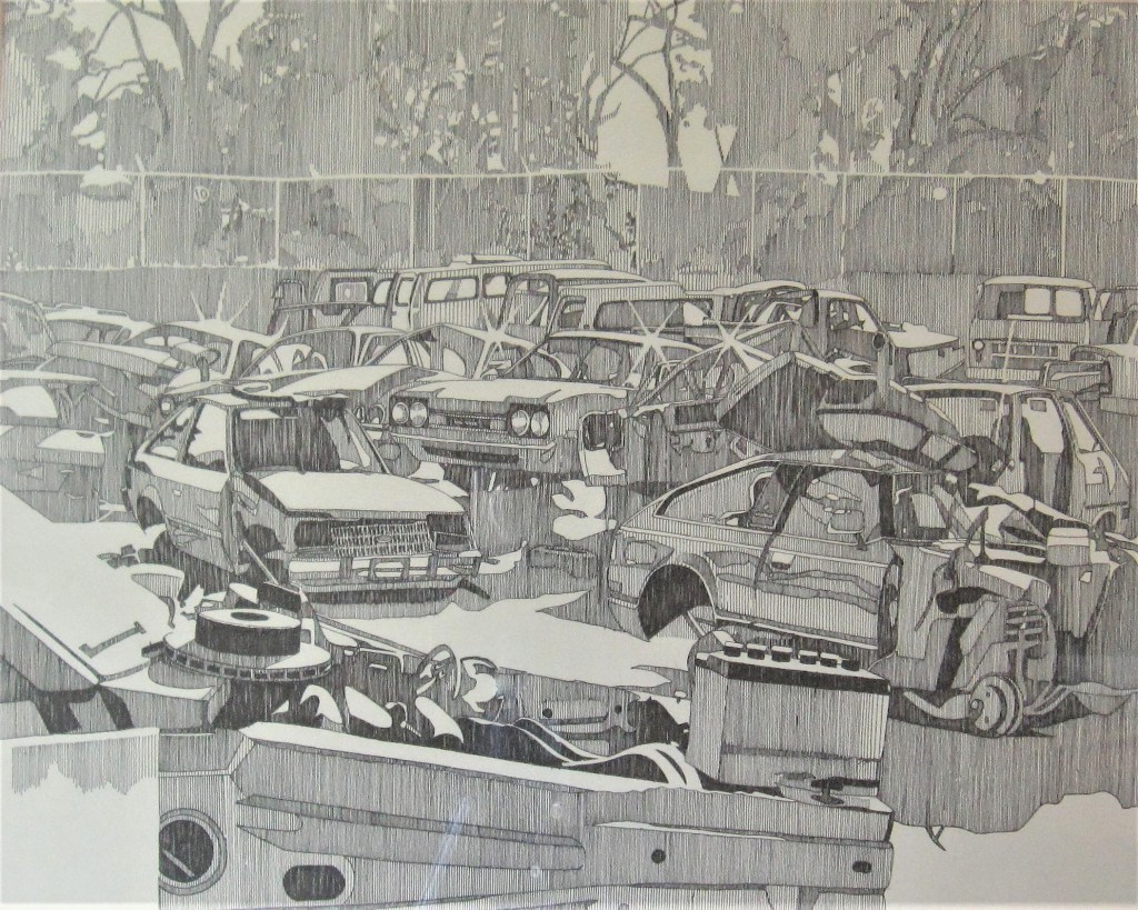 A theme has emerged. I preferred to portray, when I had a steadier hand, decay and desolation. It isn’t always so hopeless, I have found. A world of forgotten worth, a junkyard or even a single antique is alive with residual energy.
