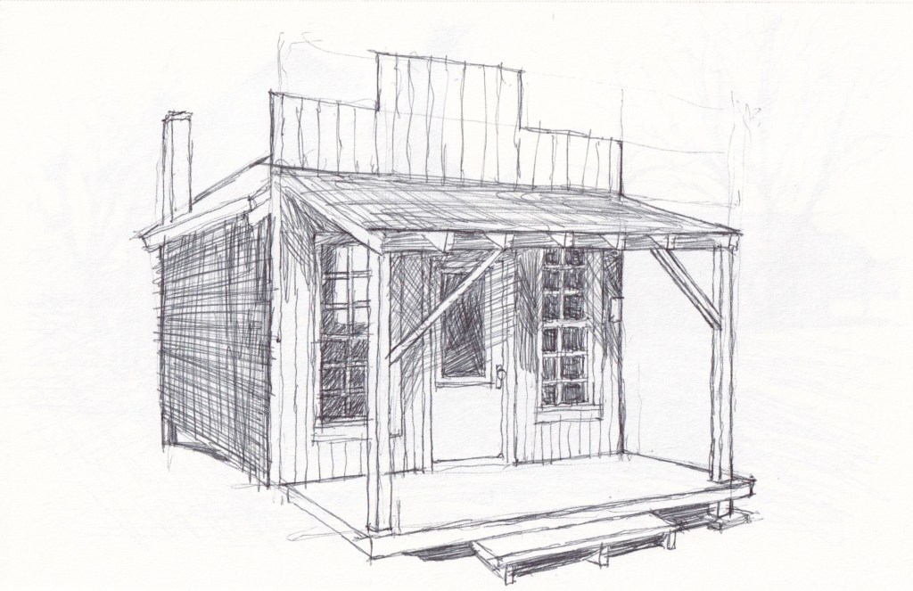 The Buncom Post Office seemed like a fine subject to draw. It’s hard to work on a larger scale so I bought a small sketchbook (5.5″x8.5″ — the same size as my novels). Also, using a ballpoint pen helps. There’s less resistance so, once I get a stroke going, it’s easier to follow through. Unfortunately, it means that I can’t erase anything. The archival quality isn’t great, either. Unlike Buncom, my sketches won’t last 171 years.