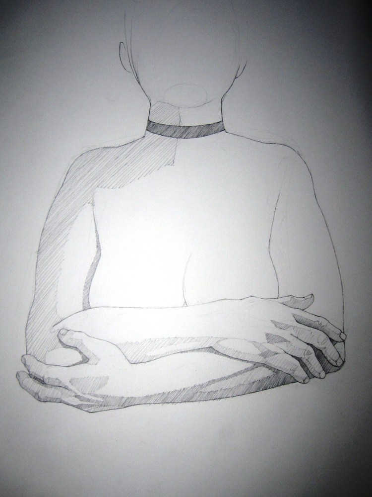 Had I misidentified her? The strip of fabric around her throat told a singular story. My imagination had always strayed to how Fanny had dealt with her last departure from our class. I would disregard, whenever I pictured this scenario, the many smocks and aprons hung up on hooks in the washroom adjacent to the studio area itself. Instead, we (her dumbfounded audience) had driven a delicate, open-hearted, watery-eyed (where the tears were perpetually just about to fall) and doe-like creature into the world without a solitary way to conceal herself. From my experience with her, she wouldn’t have fought to find relief. Fanny sharing her shape while asking, “Am I ugly there?” seemed to be more plausible. Her personality was sweet enough for it to manifest in her actions, on her face and all around her. That type of radiance would have rendered her need to cover anything obsolete. To me, she lived her life from that day forward exactly as I remembered her naked disappearance (at home, I still had an incomplete drawing of how she had looked).